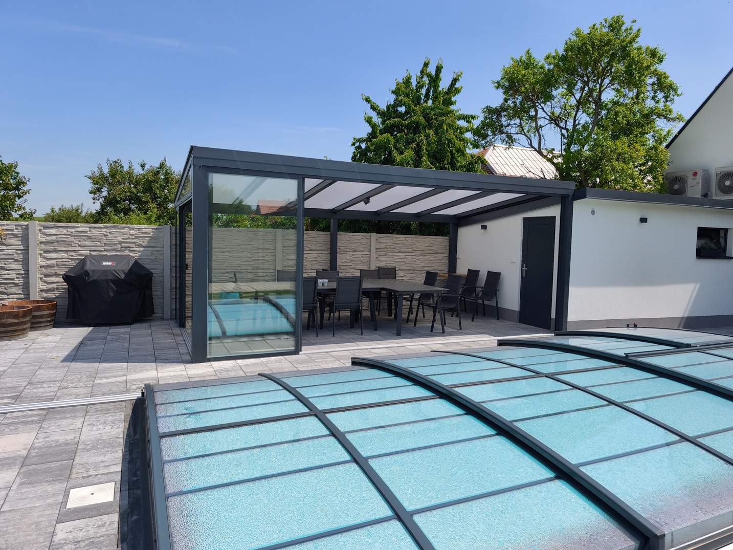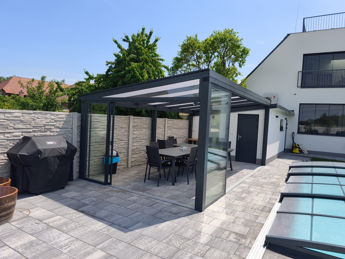 Vyberte si mezi pevnými a posuvnými variantami zastřešení. Posuvné systémy umožňují snadné přizpůsobení prostoru aktuálním potřebám a vytvoření příjemného prostředí za každého počasí.