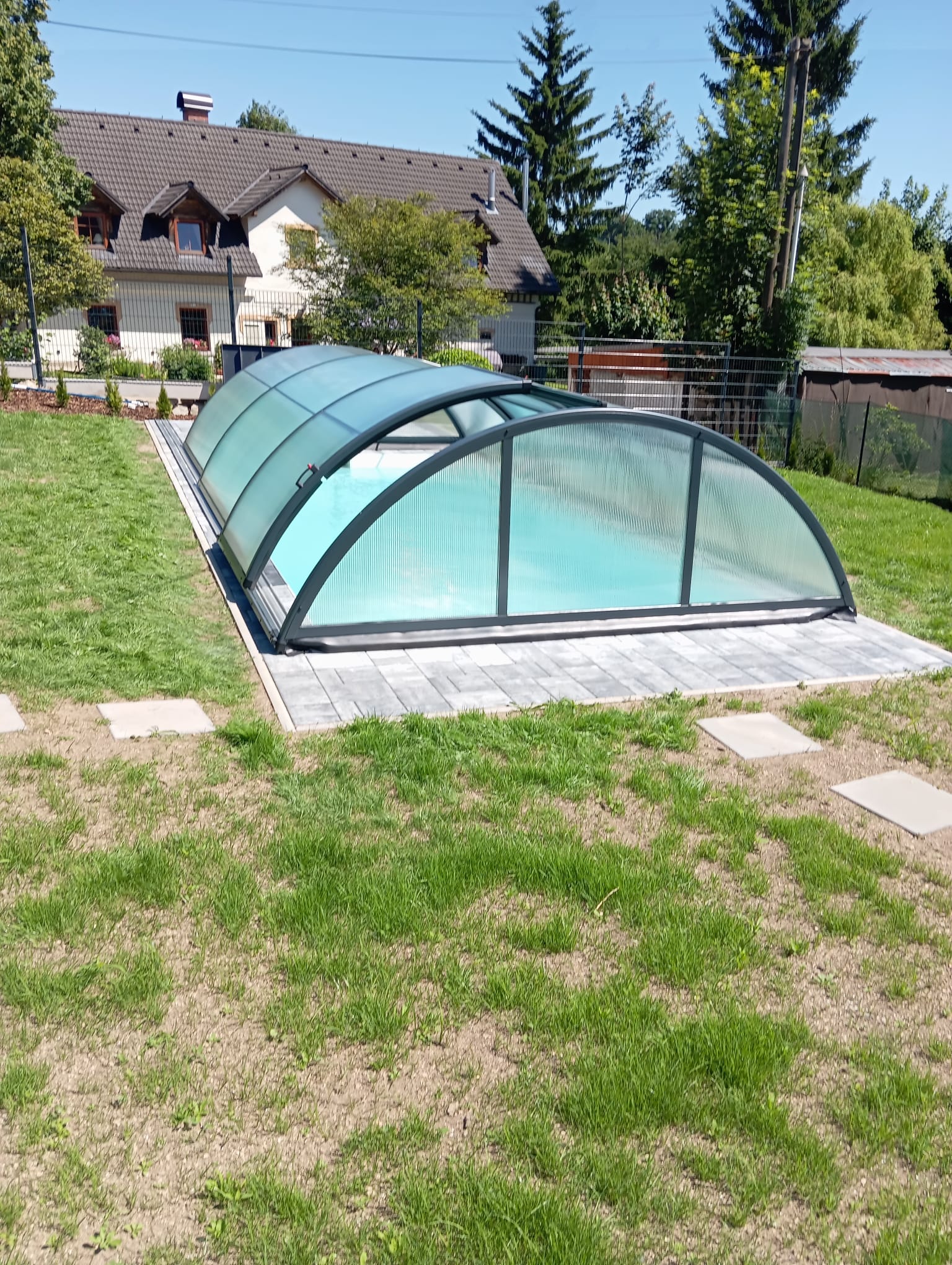 Ukázky instalací různých typů bazénových zastřešení u našich klientů.