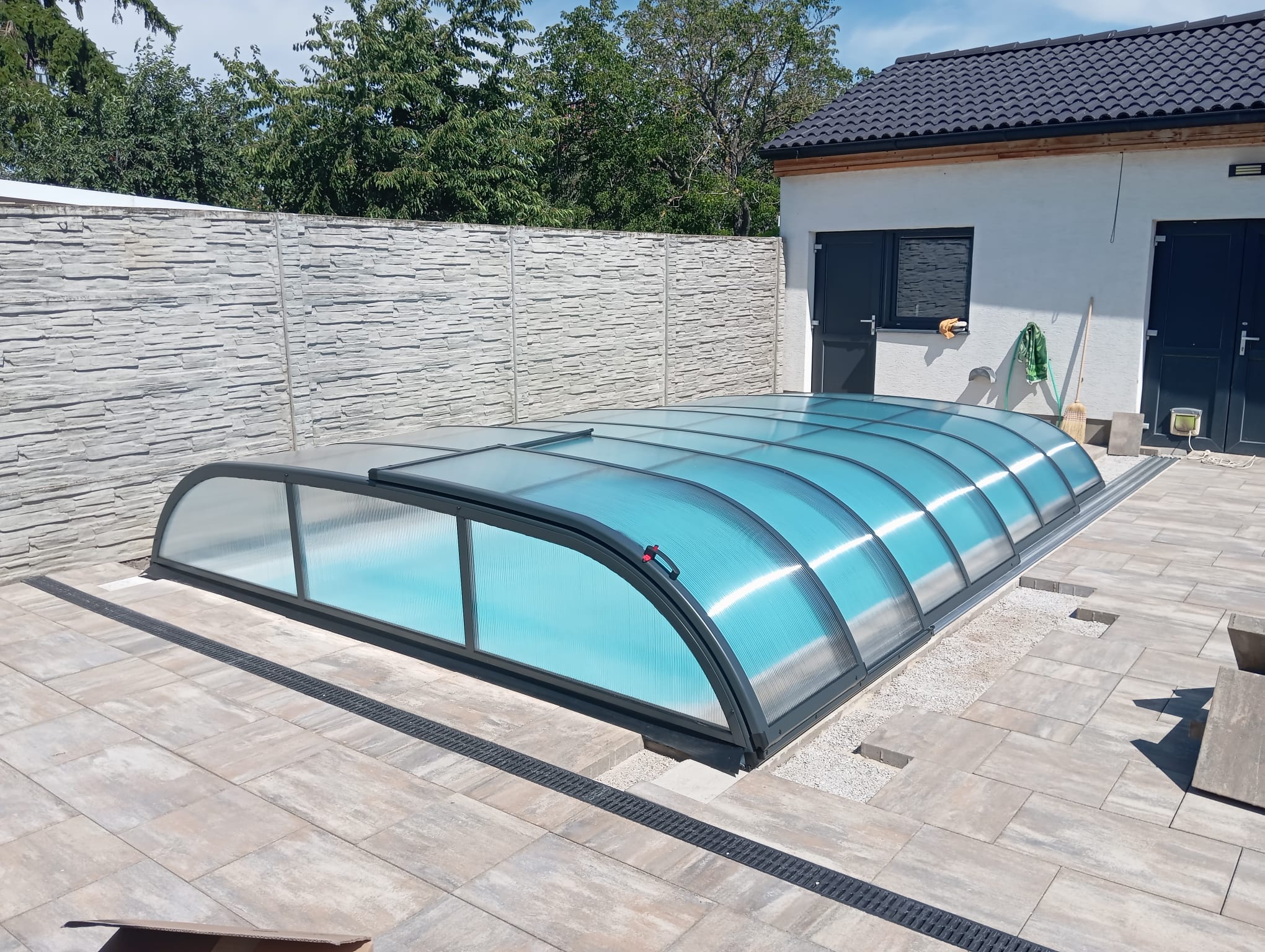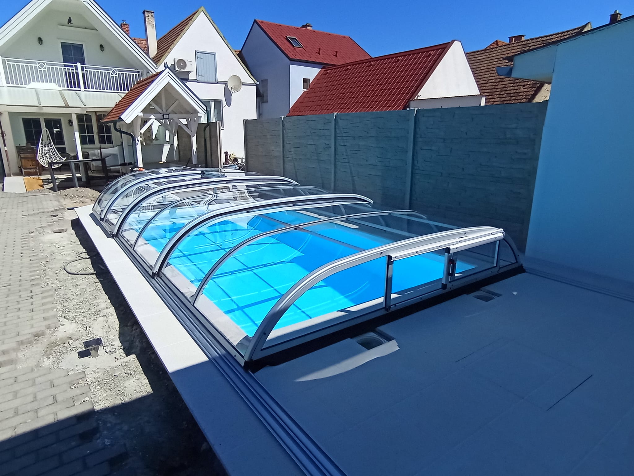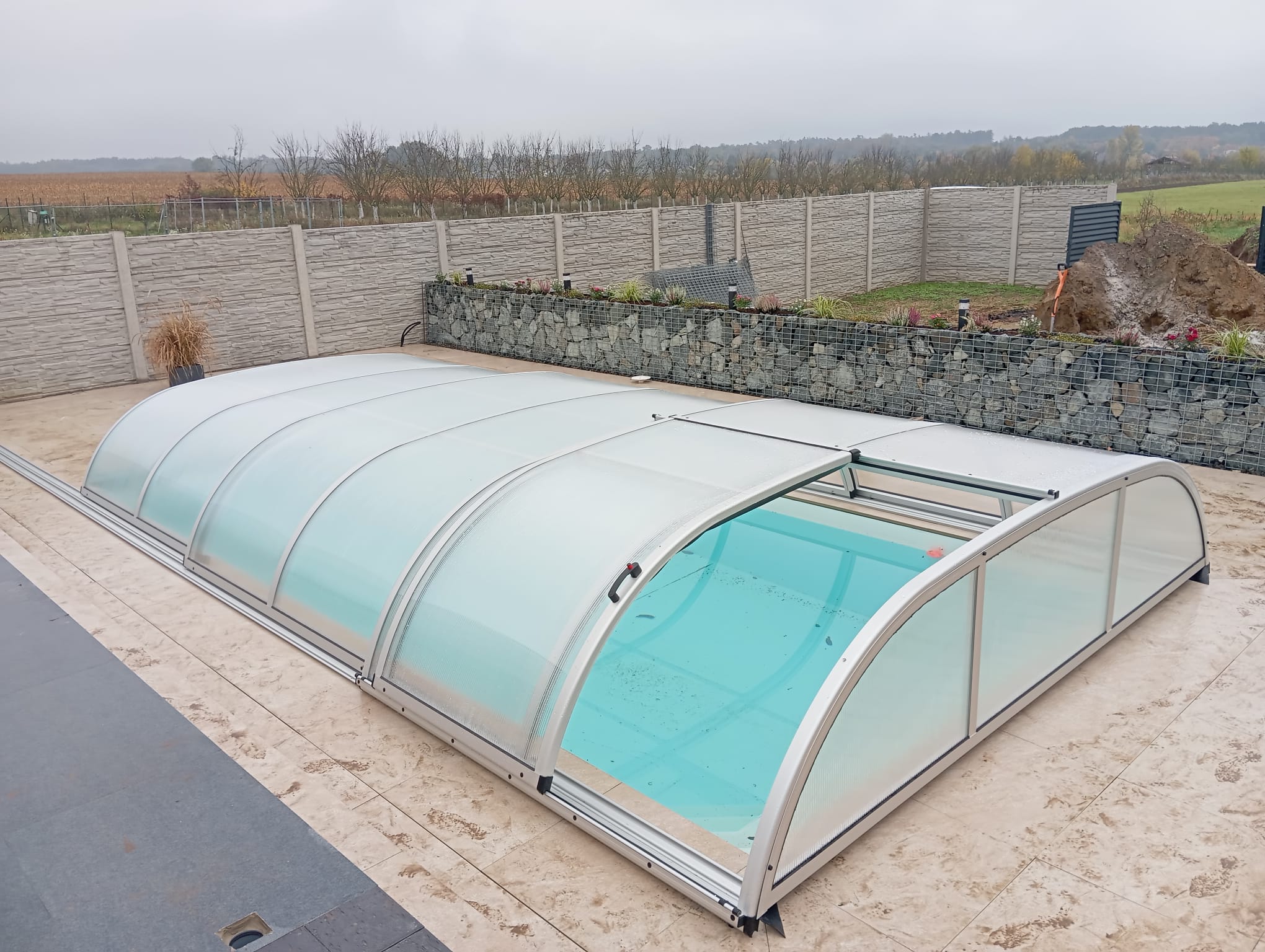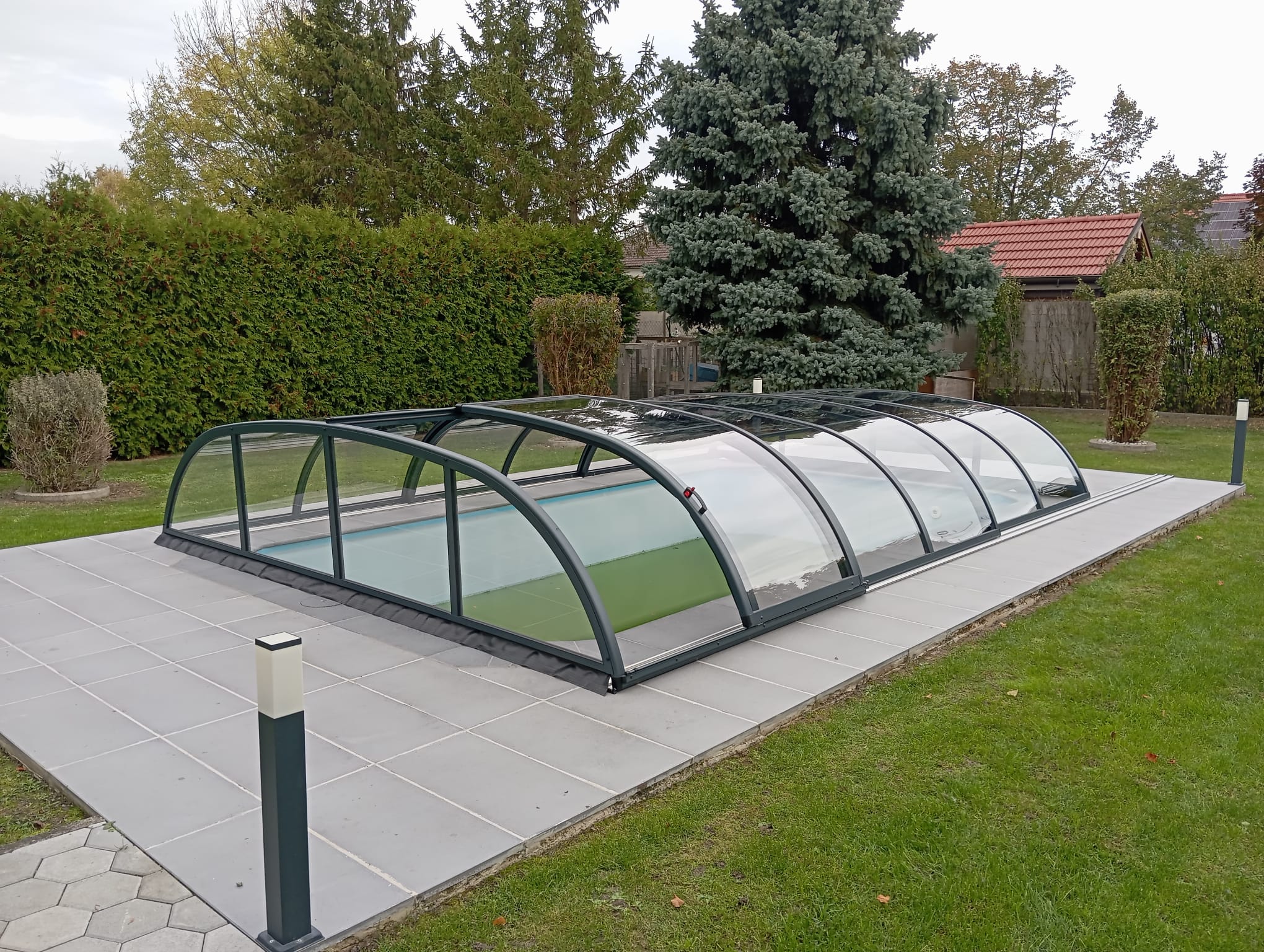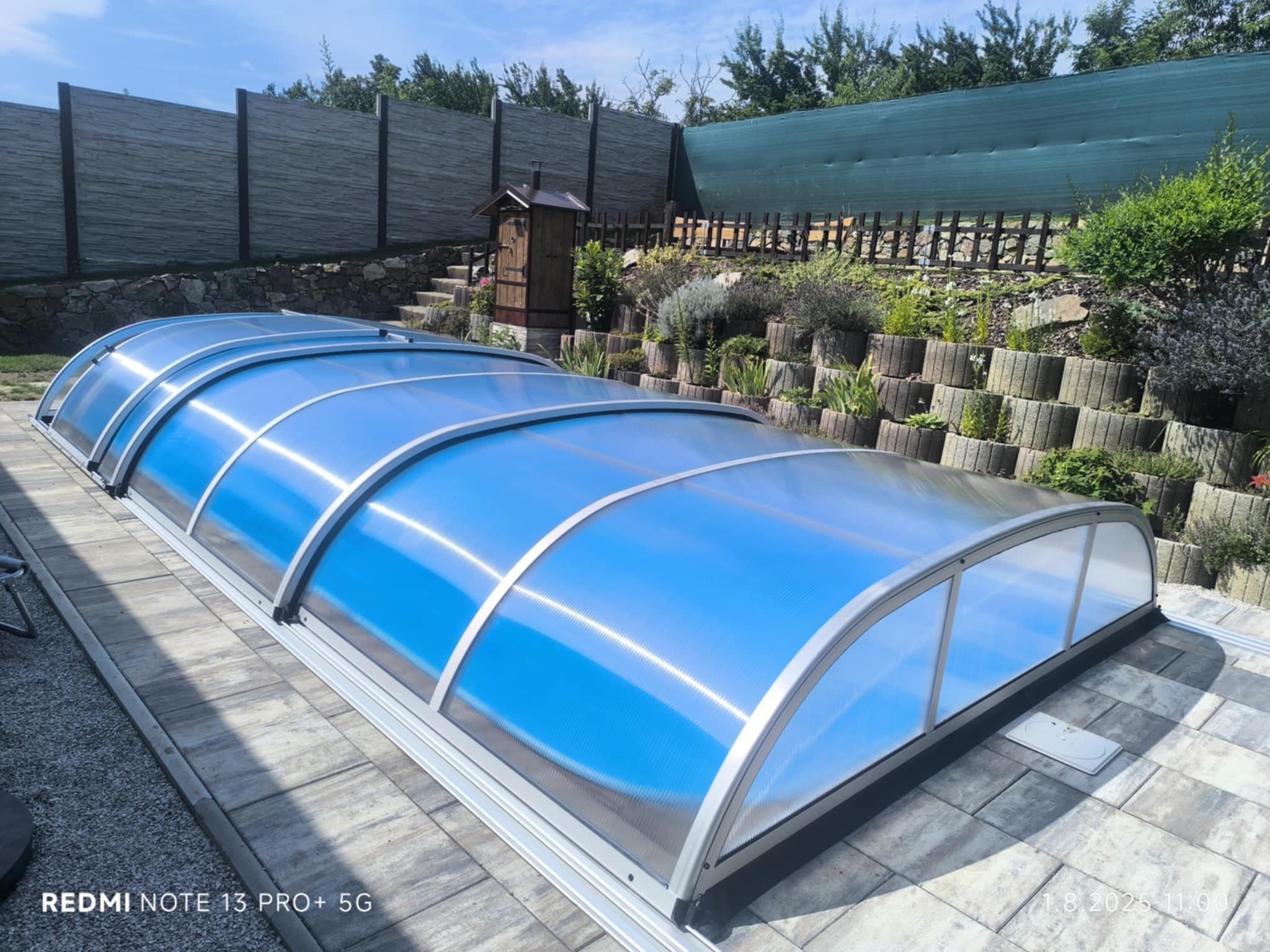 Nízké obloukové zastřešení nabízí minimalistický design, který neruší estetiku vaší zahrady, a přitom poskytuje plnohodnotnou ochranu bazénu. Díky nízké výšce je ideální pro zákazníky, kteří hledají nenápadné a zároveň funkční řešení.