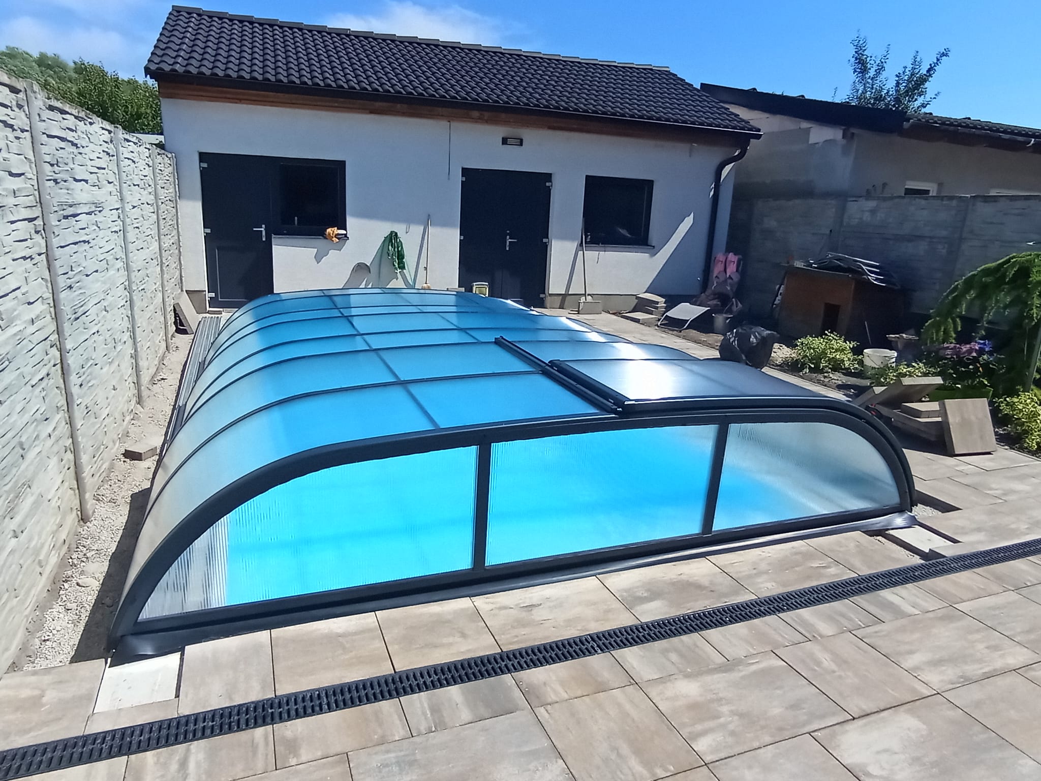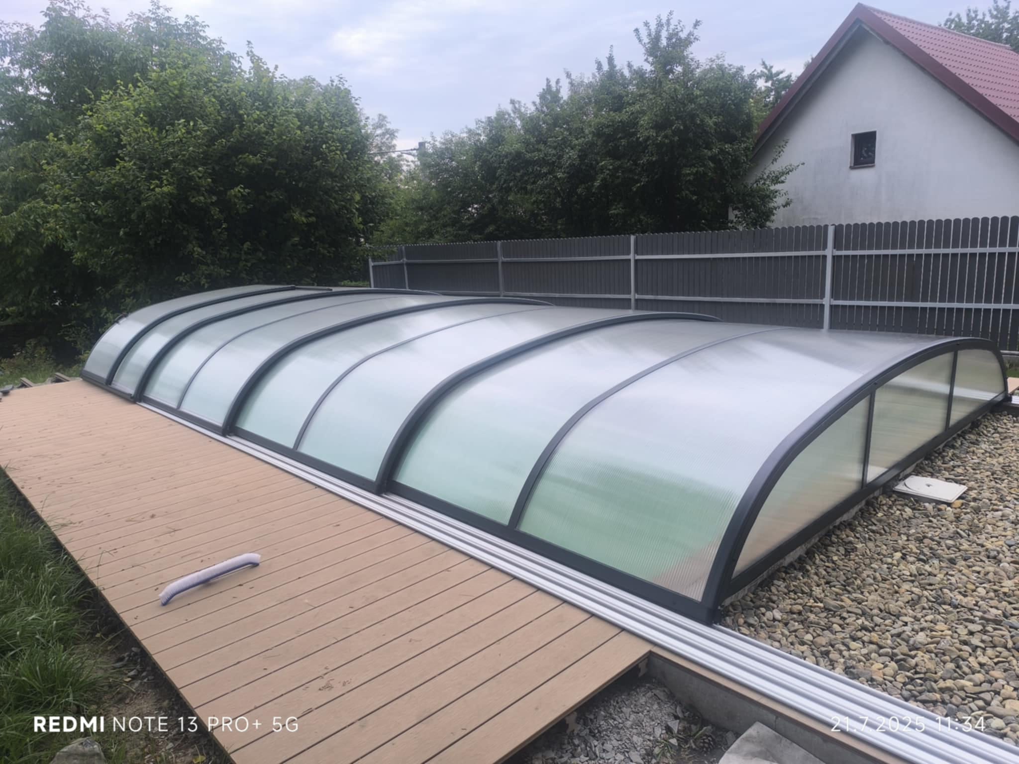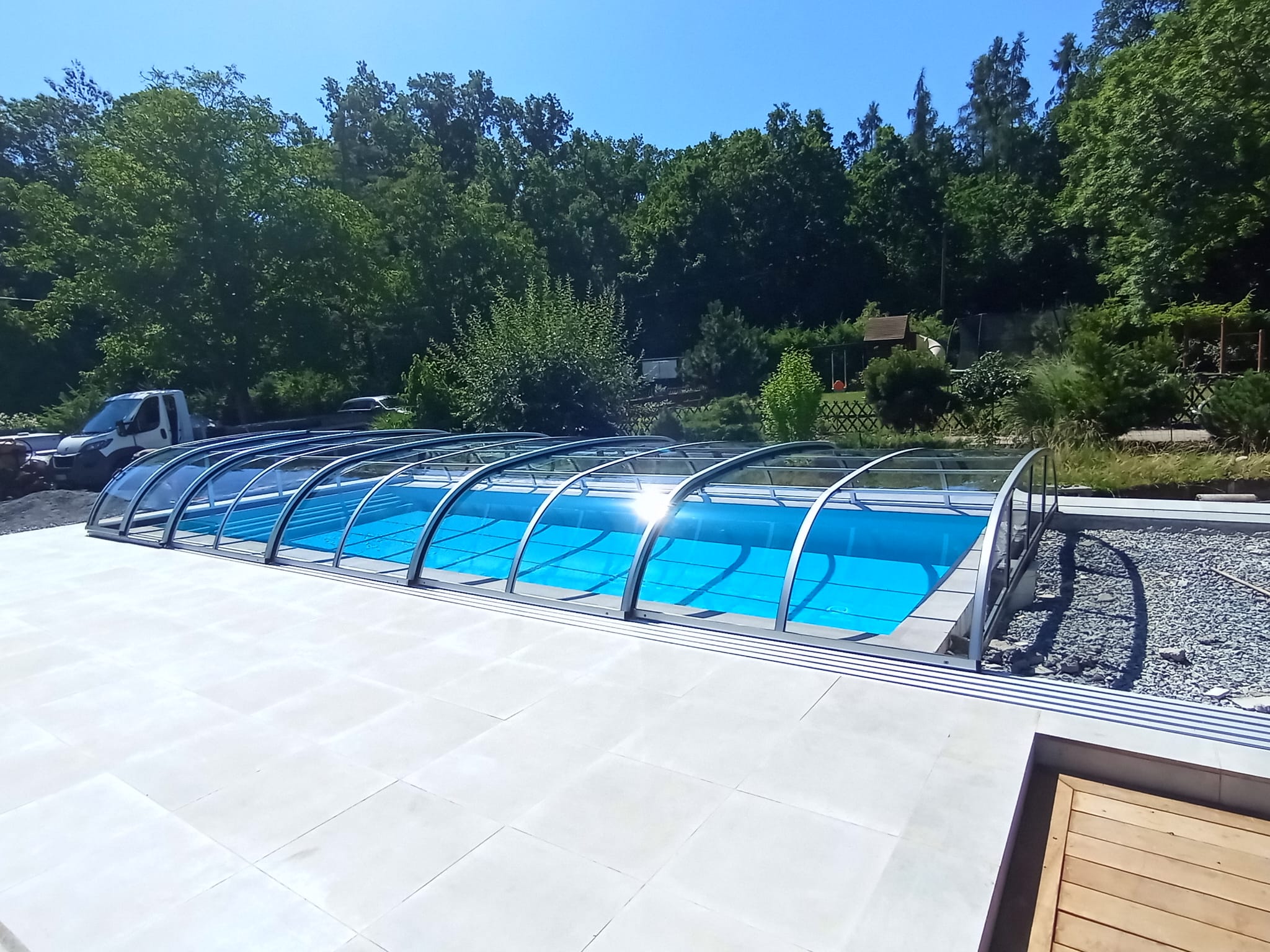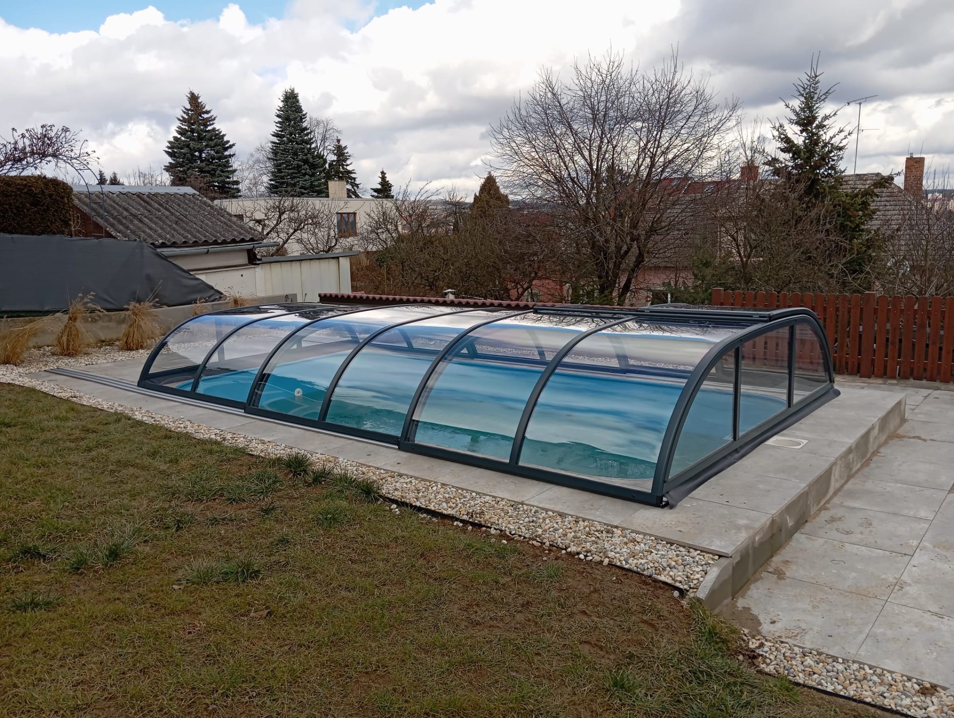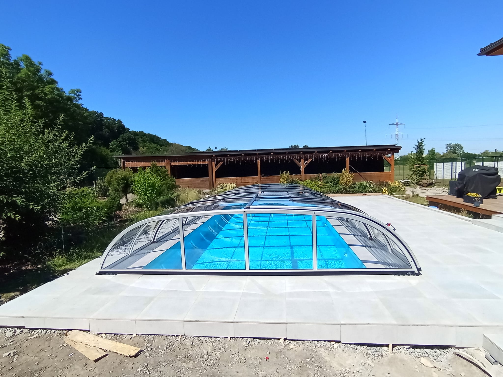 Nízké obloukové zastřešení nabízí minimalistický design, který neruší estetiku vaší zahrady, a přitom poskytuje plnohodnotnou ochranu bazénu. Díky nízké výšce je ideální pro zákazníky, kteří hledají nenápadné a zároveň funkční řešení.