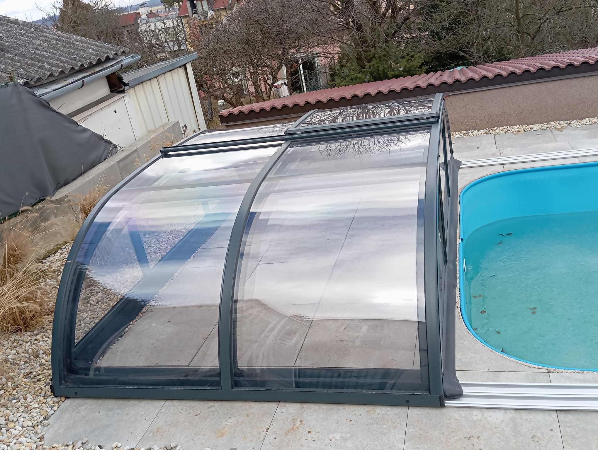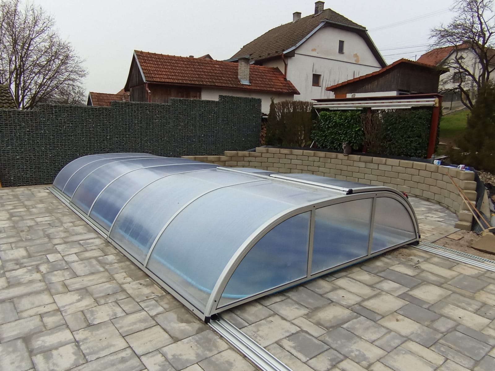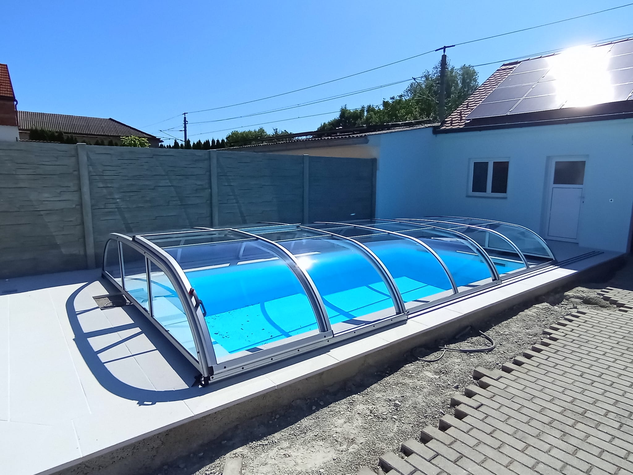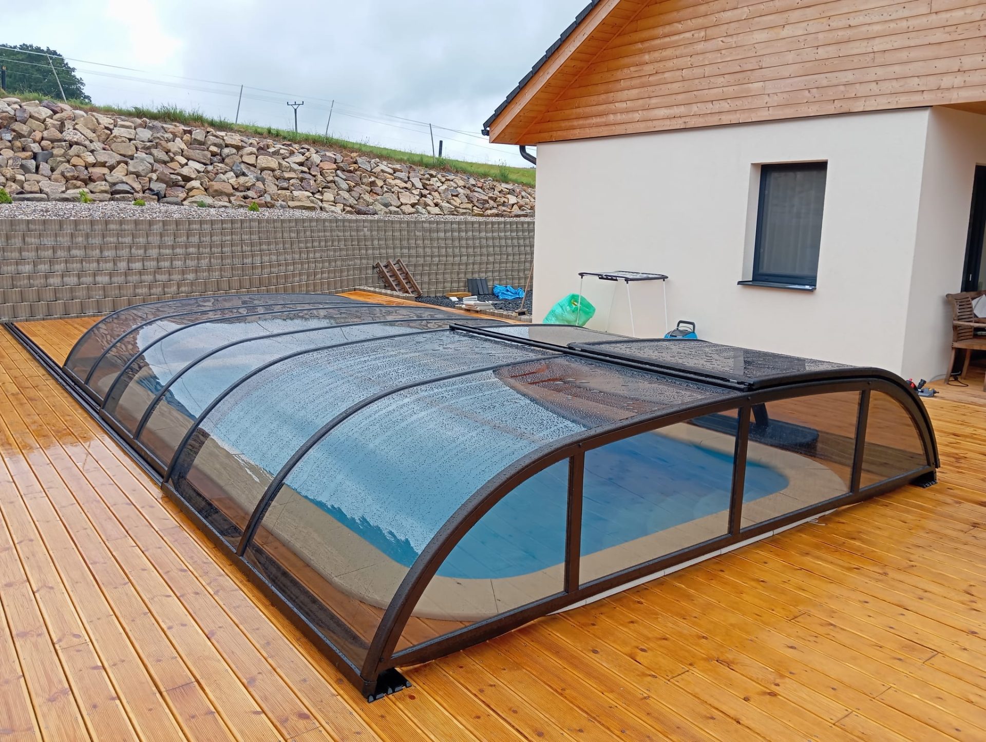 Nízké obloukové zastřešení nabízí minimalistický design, který neruší estetiku vaší zahrady, a přitom poskytuje plnohodnotnou ochranu bazénu. Díky nízké výšce je ideální pro zákazníky, kteří hledají nenápadné a zároveň funkční řešení.