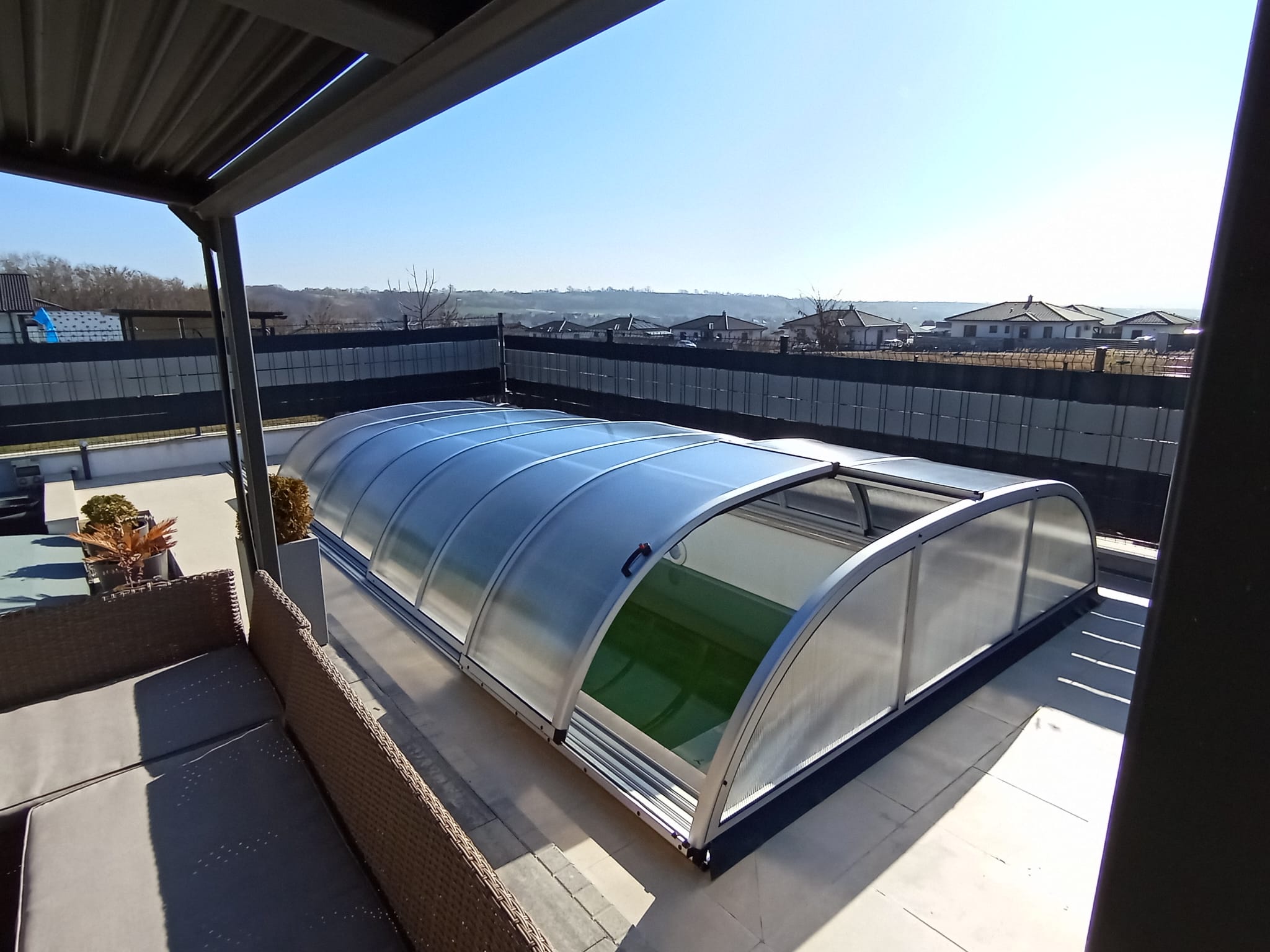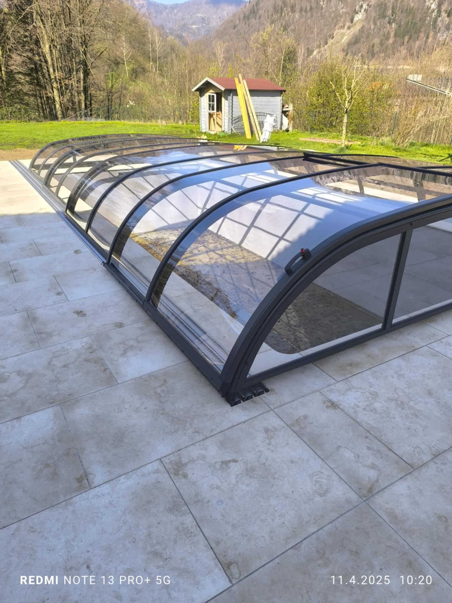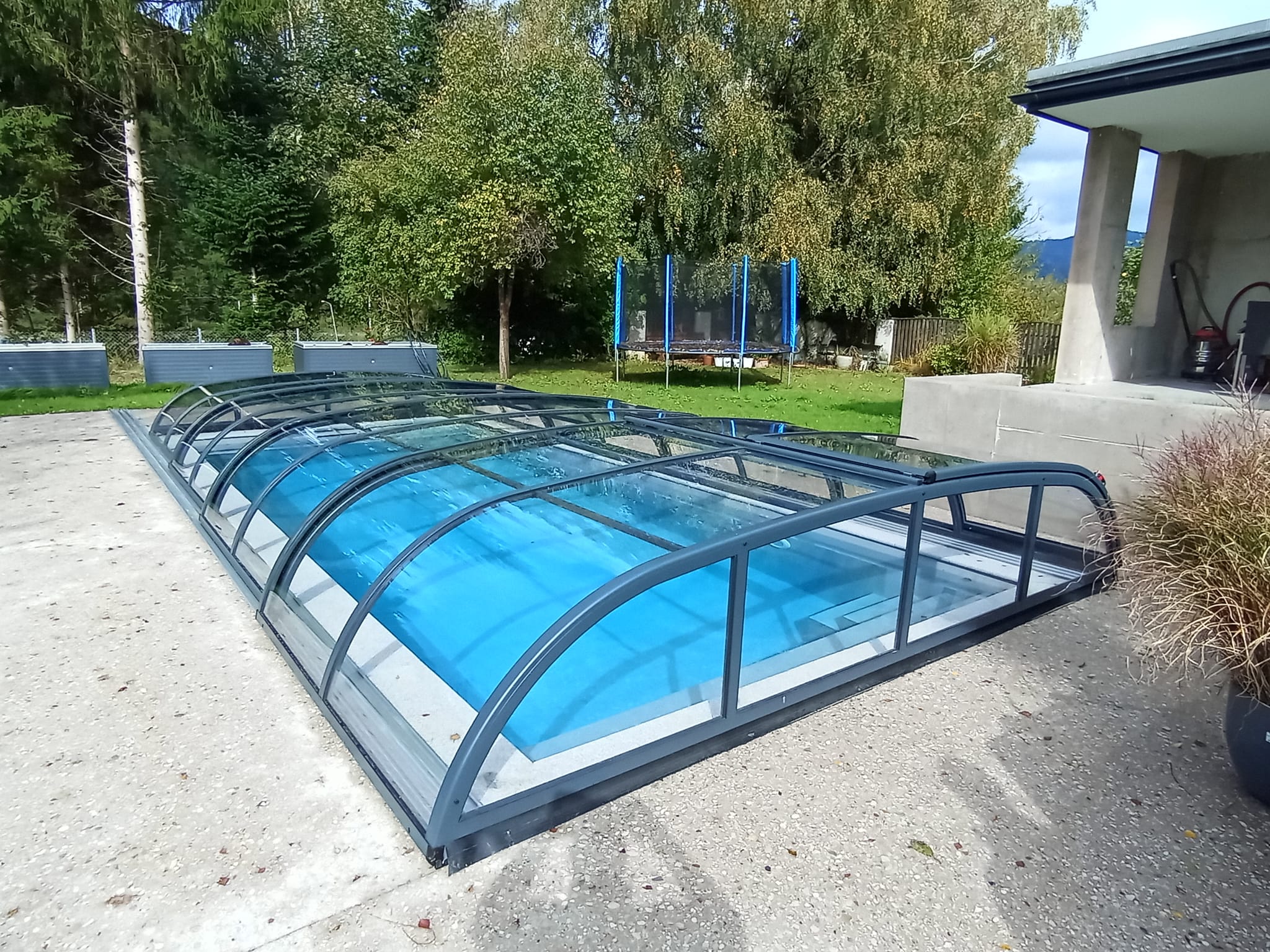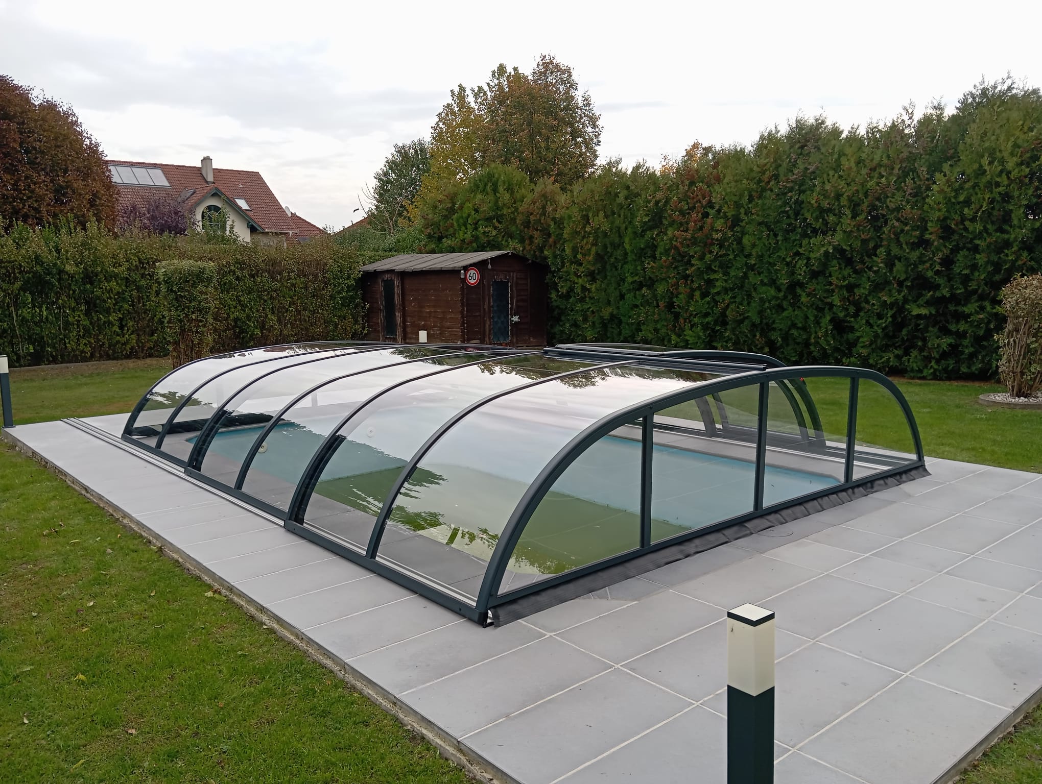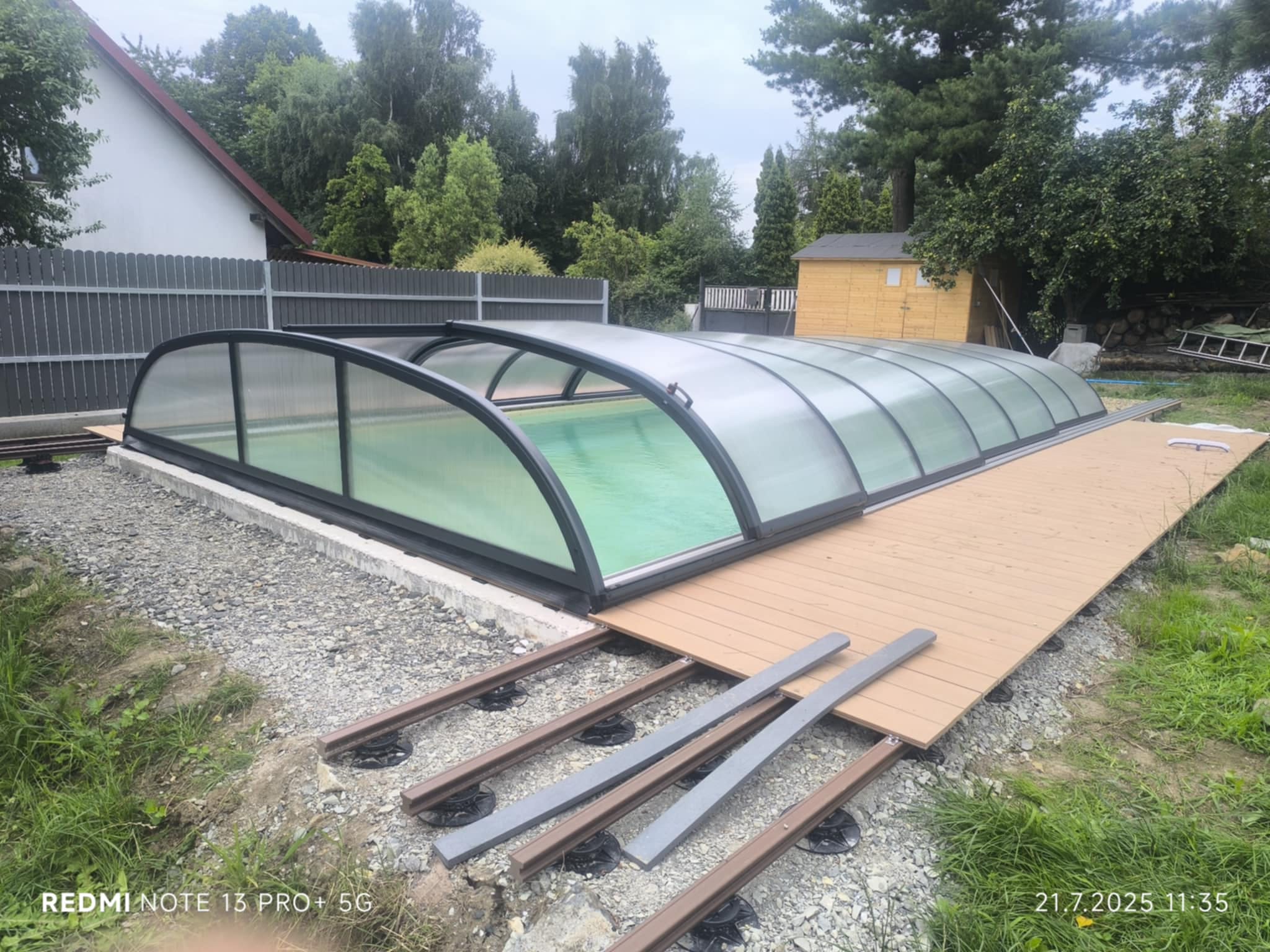 Nízké obloukové zastřešení nabízí minimalistický design, který neruší estetiku vaší zahrady, a přitom poskytuje plnohodnotnou ochranu bazénu. Díky nízké výšce je ideální pro zákazníky, kteří hledají nenápadné a zároveň funkční řešení.