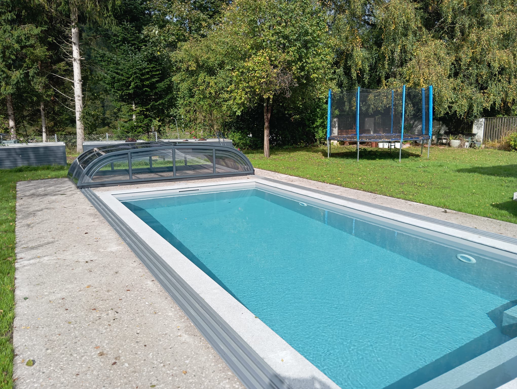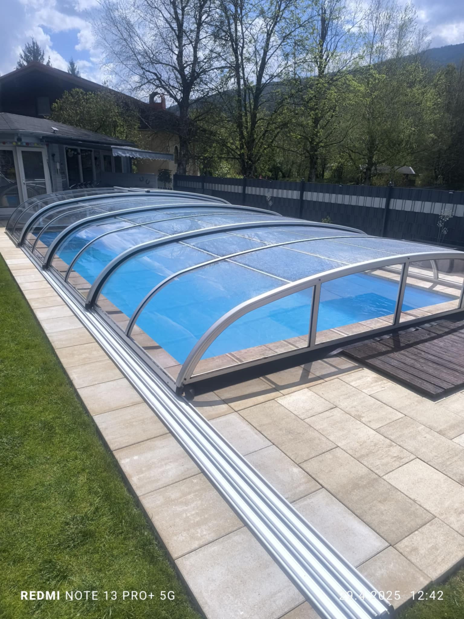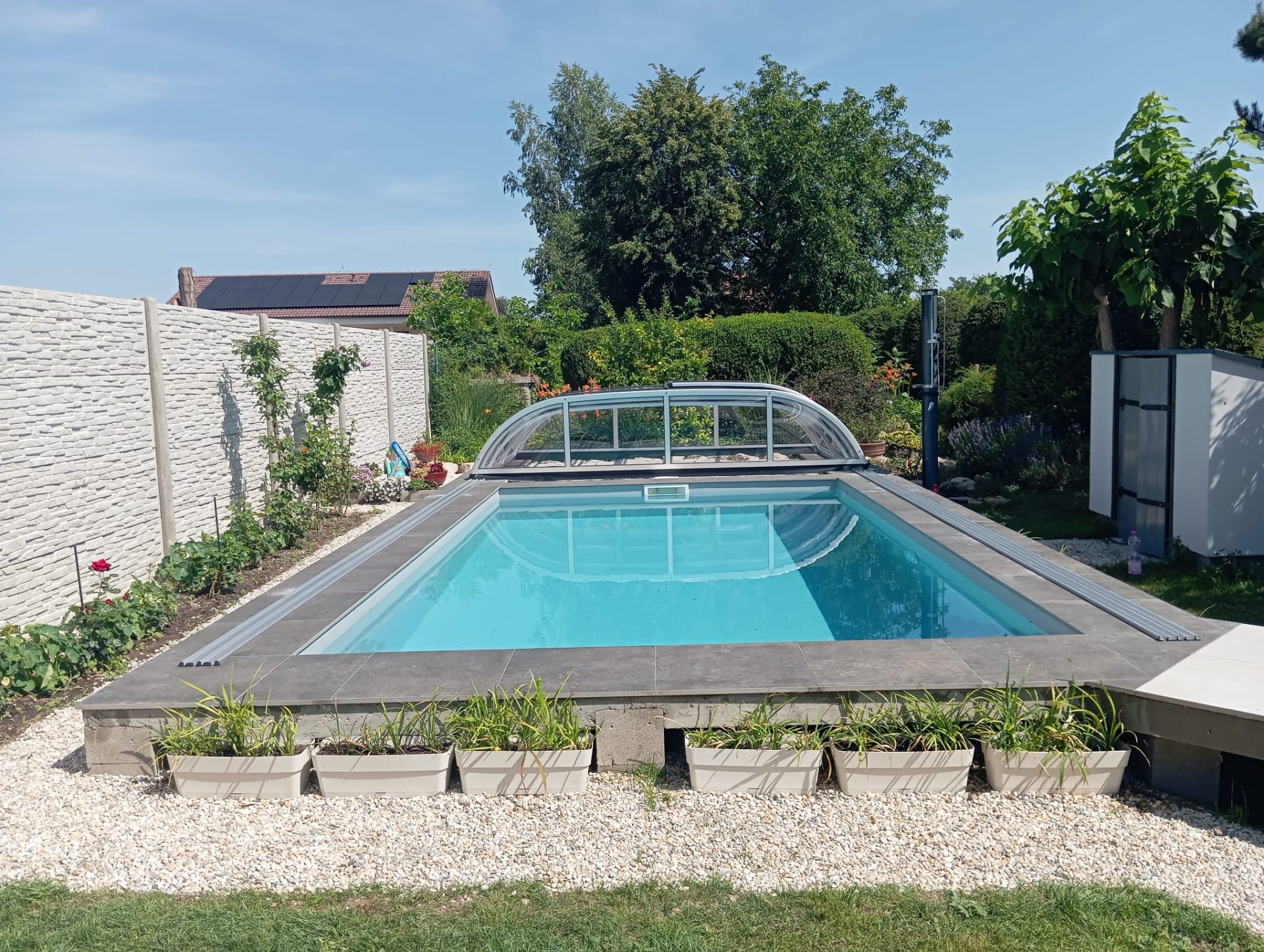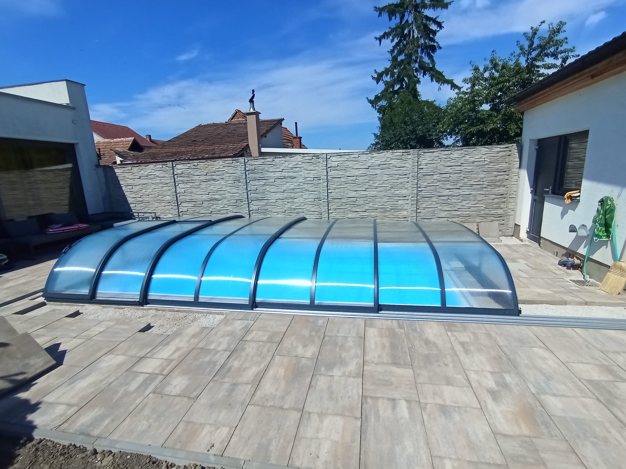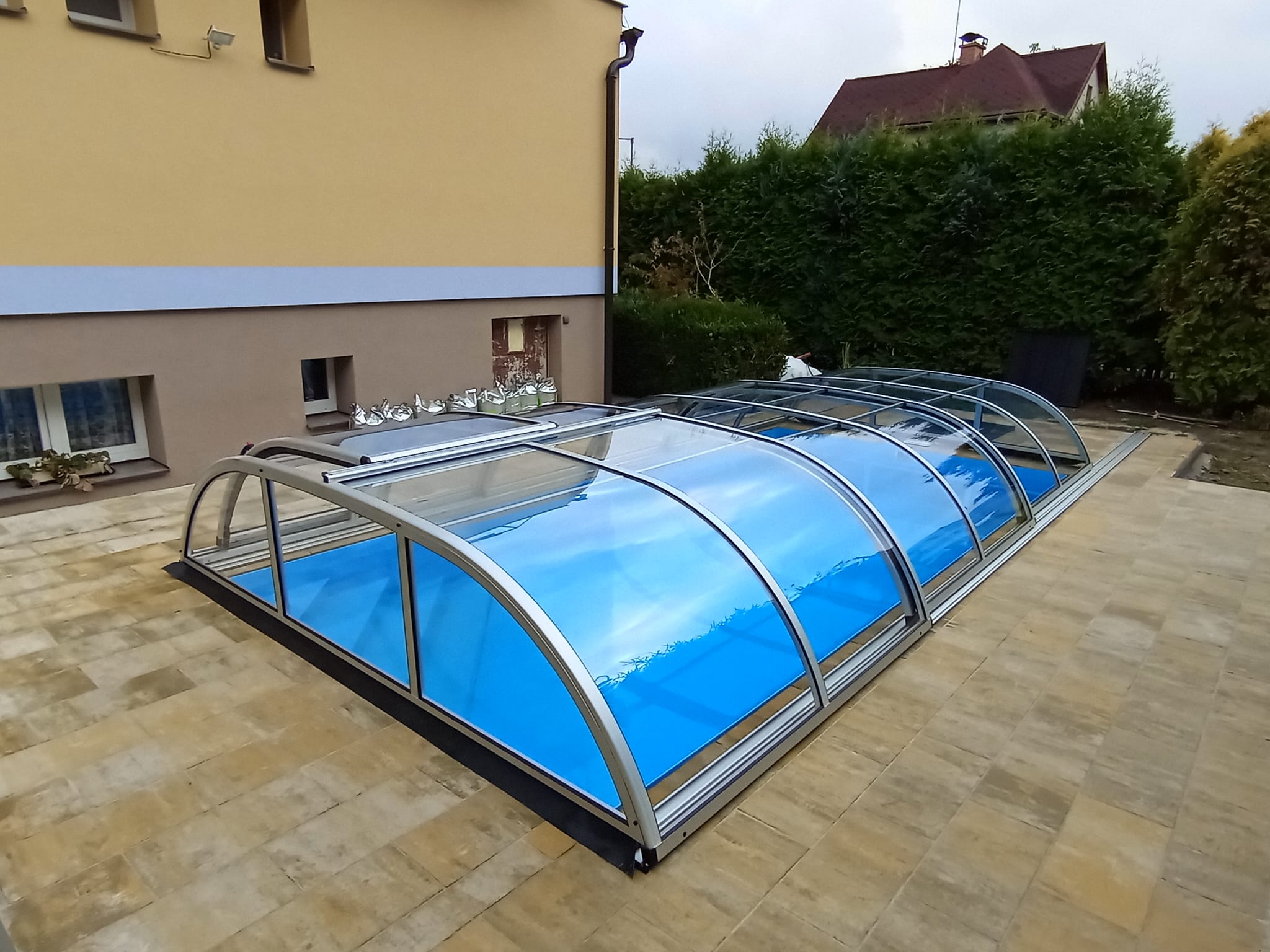 Nízké obloukové zastřešení nabízí minimalistický design, který neruší estetiku vaší zahrady, a přitom poskytuje plnohodnotnou ochranu bazénu. Díky nízké výšce je ideální pro zákazníky, kteří hledají nenápadné a zároveň funkční řešení.